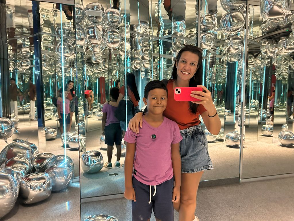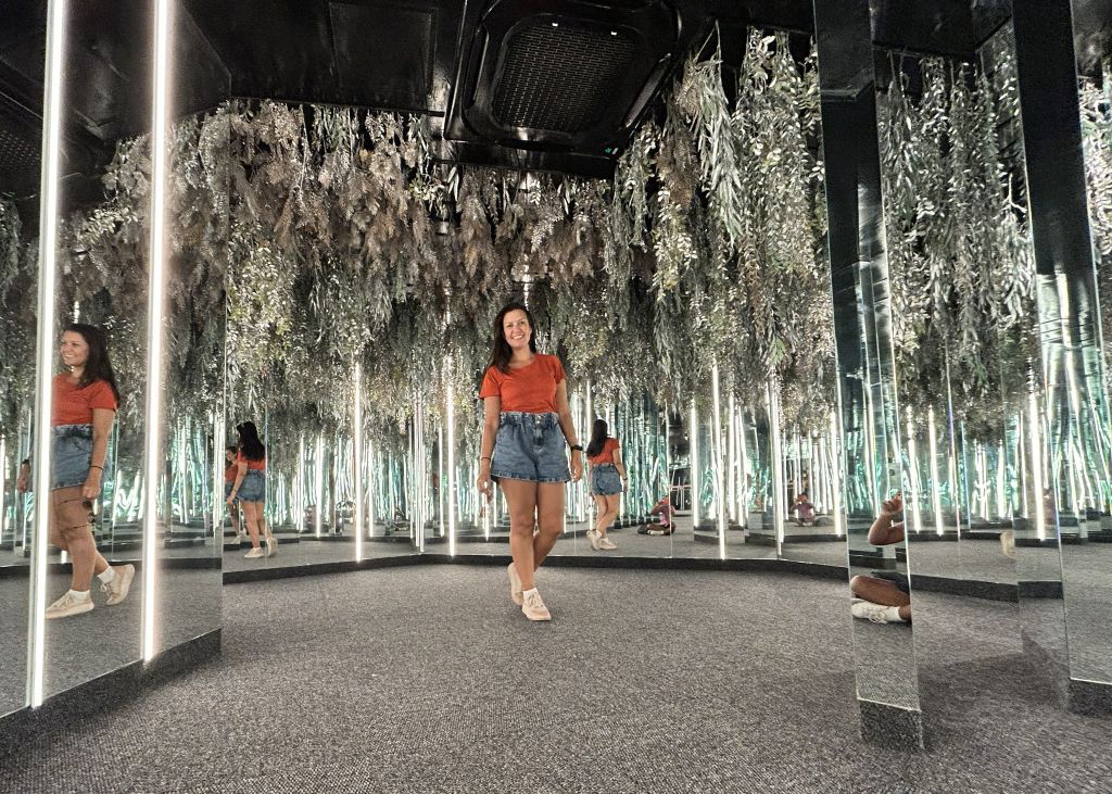 Outro ponto que acaba fazendo parte da experiência são as fotos. Em praticamente todos os ambientes há algo interessante para registrar, seja pela luz, pelos reflexos ou pelas ilusões que os espelhos criam.