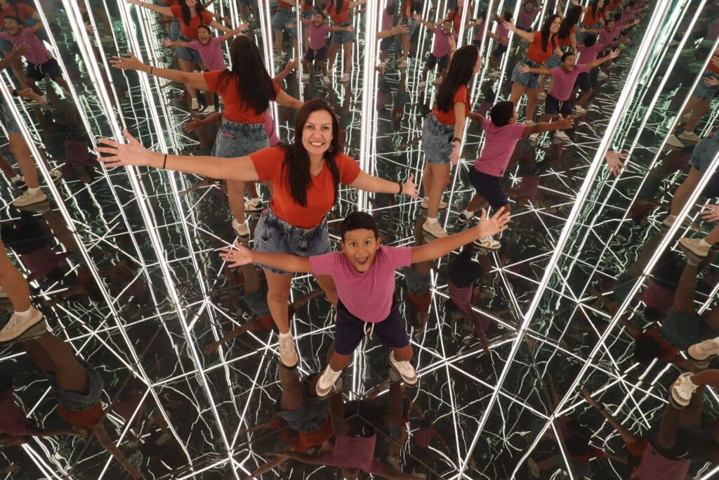 Logo no início, a proposta já fica clara: explorar ilusões de ótica, jogos de reflexo e efeitos de profundidade. Em alguns espaços, os espelhos criam a sensação de infinito; em outros, a imagem aparece distorcida (você se verá mais gordo ou magro, alto ou baixo) ou multiplicada, com reflexos por todos os lados, o que costuma divertir bastante as crianças e despertar curiosidade a cada nova sala.